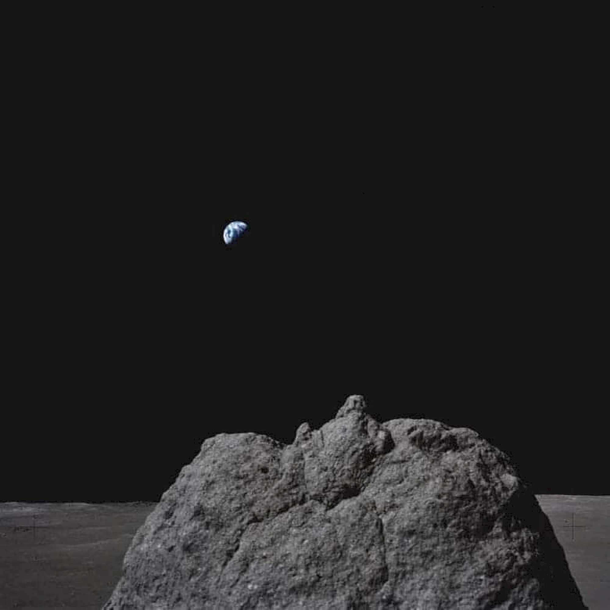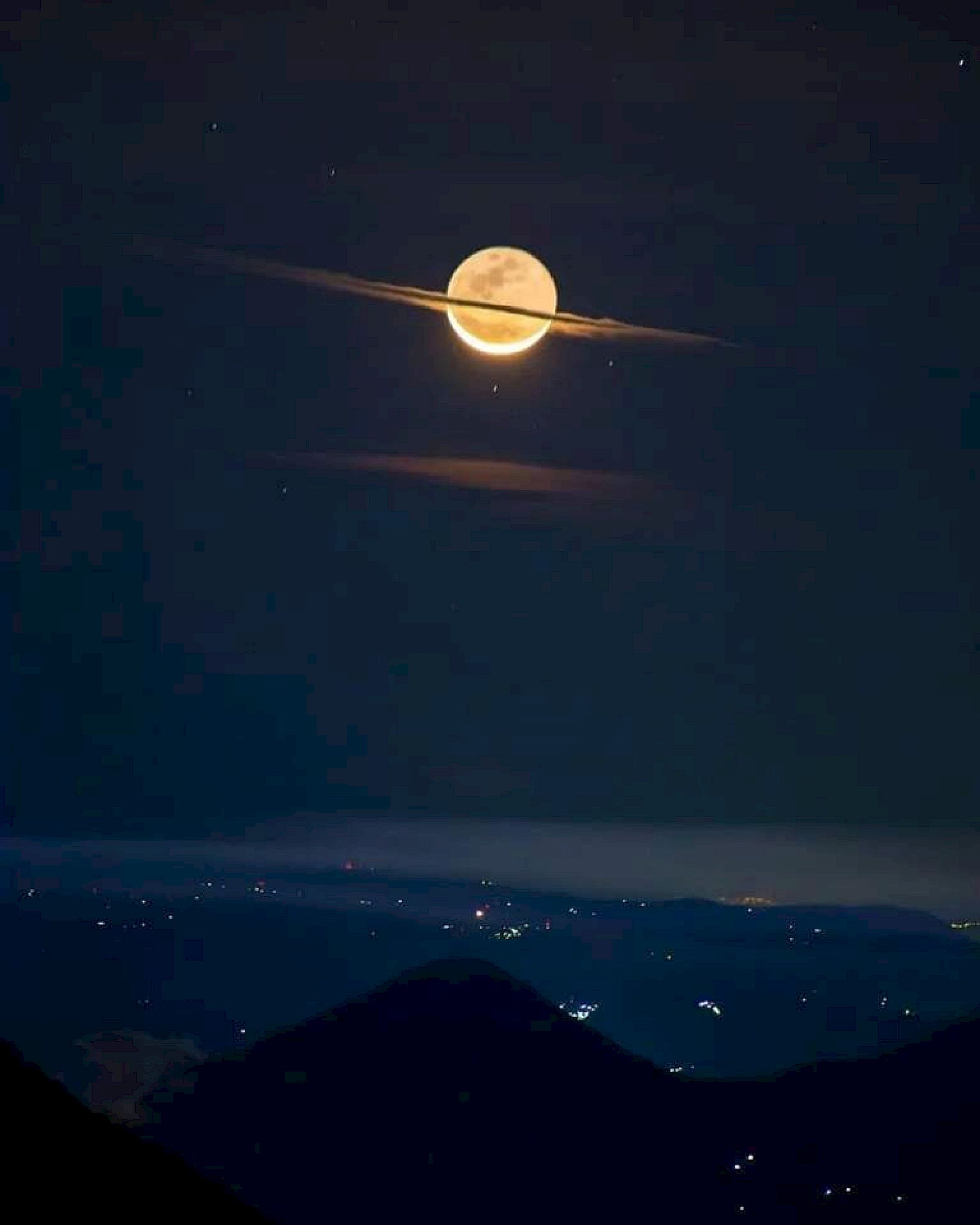 A starry night sky over a mountainous landscape with the moon peeking above the horizon, creating a serene and mystical scene.